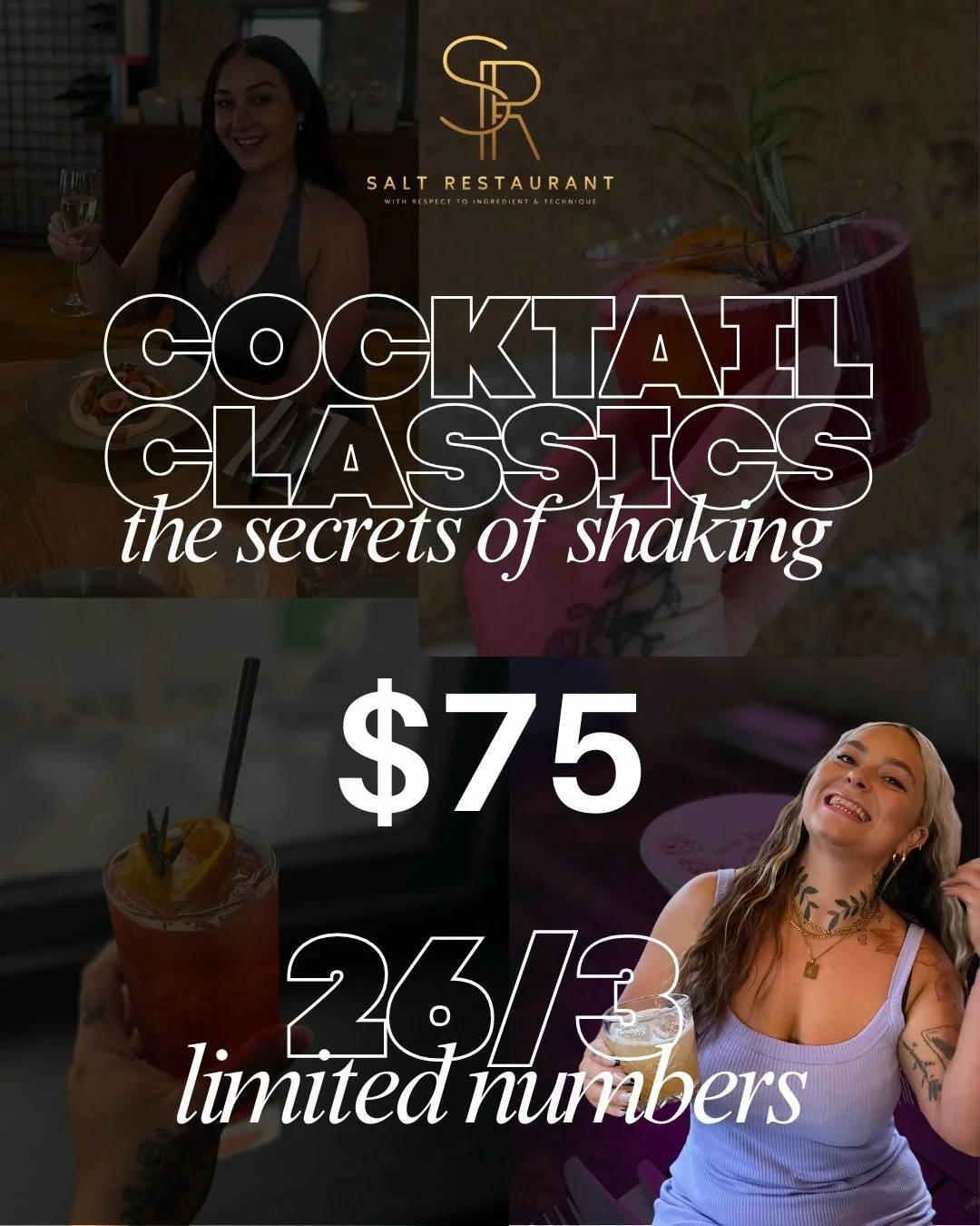 An interactive night where you can learn the secrets to shaking 2 well loved coktails and how to layer a shot! Ticket includes, 2 cocktails, 1 shot and their recipes. Limited number of spaces. Food can be ordered from the regular menu to coincide with the end of class. Roughly 1.5hours